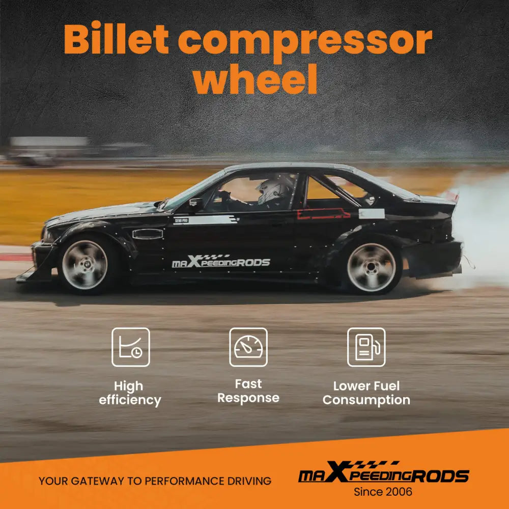 4. Billet compressor wheel:forged full-machined billet aluminum compressor wheels with a larger horsepower range and better boost response