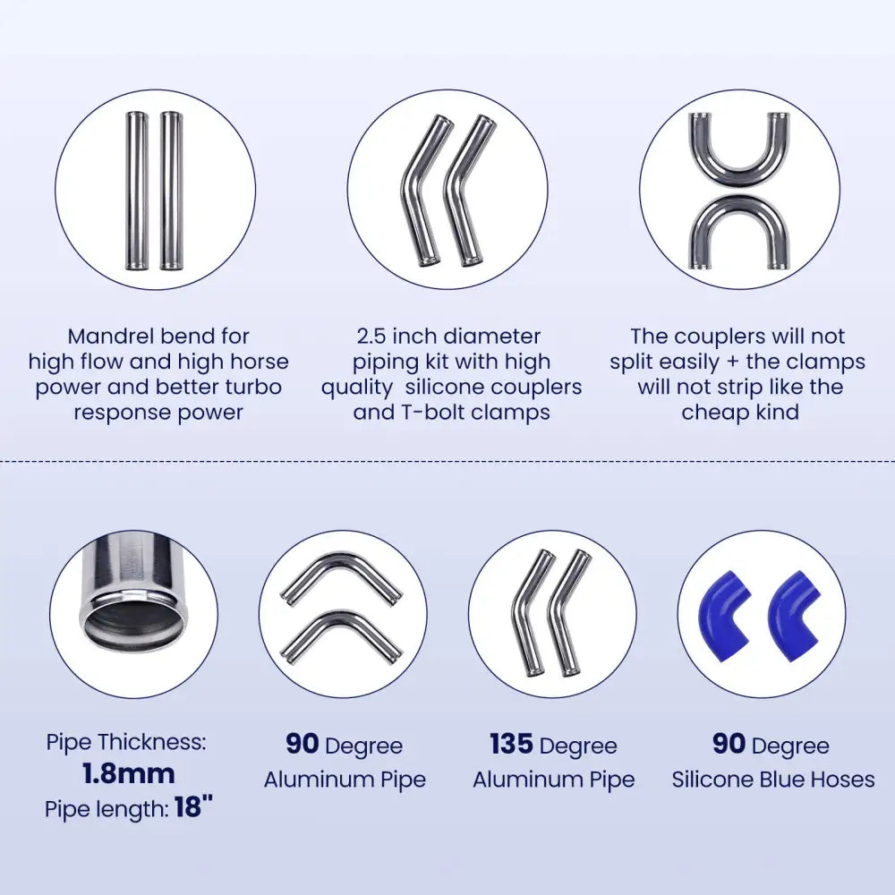 600x300x76 Intercooler 3.0 76mm Inlet Outlet + 2.5 64mm Intercooler Pipe Kits